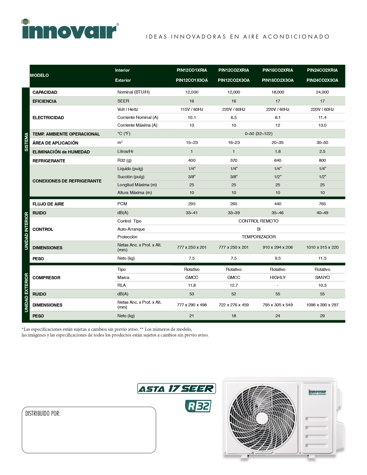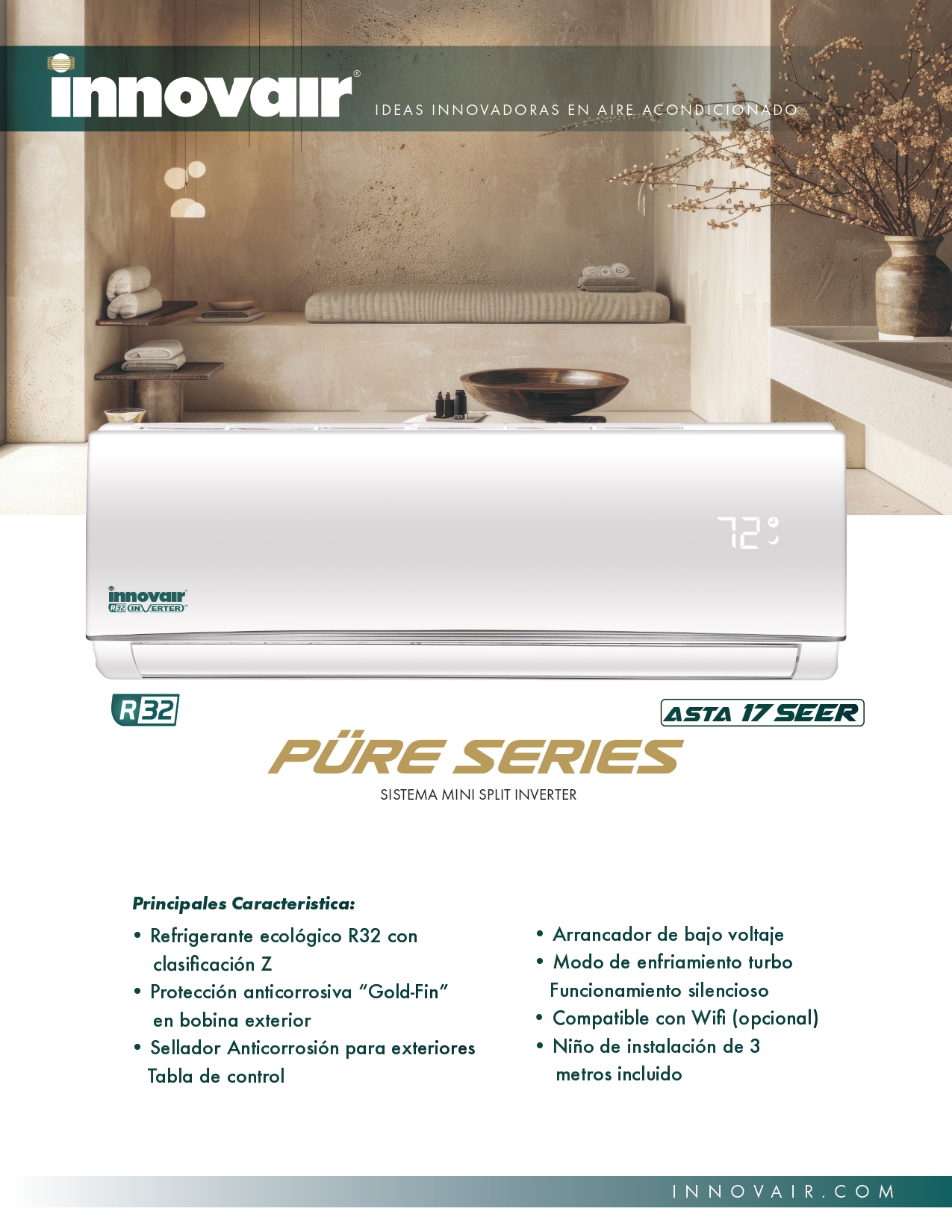 AIRE ACONDICIONADO SIST MIN-SPLIT 12KBTU 220/1 R32 SEER 16 PURE INVERTER INNOVAR